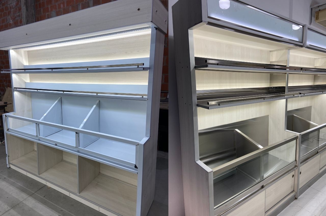 La iluminación LED en cada nivel realza los productos, generando una exhibición más atractiva que impulsa la venta.